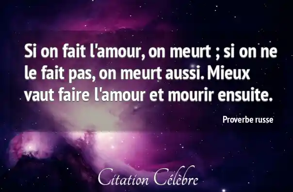 Si on fait l'amour, on meurt ; si on ne le fait pas, on meurt aussi. Mieux vaut faire l'amour et mourir ensuite.