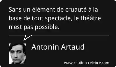 Sans un élément de cruauté à la base de tout spectacle, le théâtre n'est pas possible.