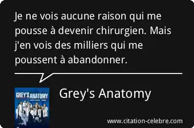 Je ne vois aucune raison qui me pousse à devenir chirurgien. Mais j'en vois des milliers qui me poussent à abandonner.