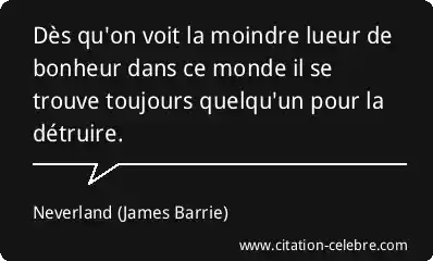 Dès qu'on voit la moindre lueur de bonheur dans ce monde il se trouve toujours quelqu'un pour la détruire.