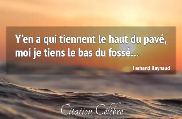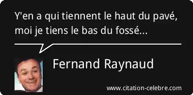 Y'en a qui tiennent le haut du pavé, moi je tiens le bas du fossé...