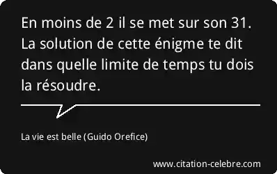 En moins de 2 il se met sur son 31. La solution de cette énigme te dit dans quelle limite de temps tu dois la résoudre.