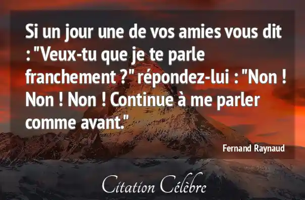 Si un jour une de vos amies vous dit : "Veux-tu que je te parle franchement ?" répondez-lui : "Non ! Non ! Non ! Continue à me parler comme avant."