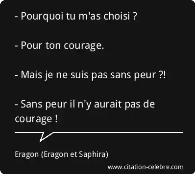 - Pourquoi tu m'as choisi ? - Pour ton courage. - Mais je ne suis pas sans peur ?! - Sans peur il n'y aurait pas de courage !