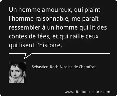 Un homme amoureux, qui plaint l'homme raisonnable, me paraît ressembler à un homme qui lit des contes de fées, et qui raille ceux qui lisent l'histoire.