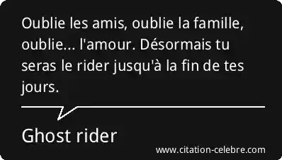 Oublie les amis, oublie la famille, oublie... l'amour. Désormais tu seras le rider jusqu'à la fin de tes jours.