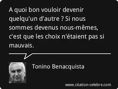 A quoi bon vouloir devenir quelqu'un d'autre ? Si nous sommes devenus nous-mêmes, c'est que les choix n'étaient pas si mauvais.