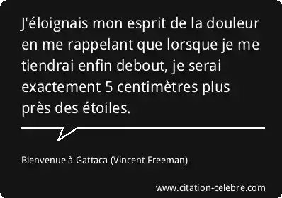 J'éloignais mon esprit de la douleur en me rappelant que lorsque je me tiendrai enfin debout, je serai exactement 5 centimètres plus près des étoiles.