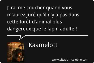 J'irai me coucher quand vous m'aurez juré qu'il n'y a pas dans cette forêt d'animal plus dangereux que le lapin adulte !