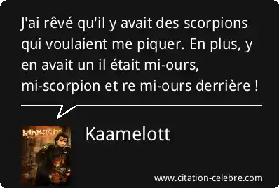 J'ai rêvé qu'il y avait des scorpions qui voulaient me piquer. En plus, y en avait un il était mi-ours, mi-scorpion et re mi-ours derrière !