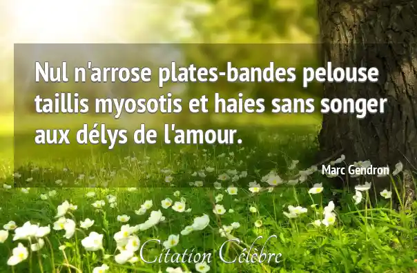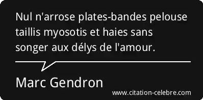 Nul n'arrose plates-bandes pelouse taillis myosotis et haies sans songer aux délys de l'amour.