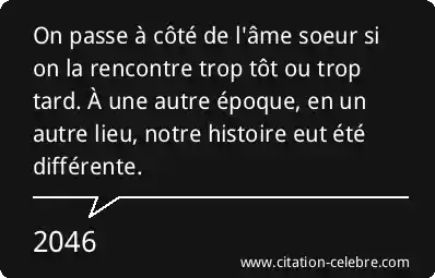 On passe à côté de l'âme soeur si on la rencontre trop tôt ou trop tard. À une autre époque, en un autre lieu, notre histoire eut été différente.