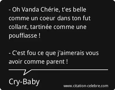 - Oh Vanda Chérie, t'es belle comme un coeur dans ton fut collant, tartinée comme une pouffiasse ! - C'est fou ce que j'aimerais vous avoir comme parent !