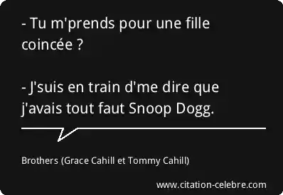 - Tu m'prends pour une fille coincée ? - J'suis en train d'me dire que j'avais tout faut Snoop Dogg.