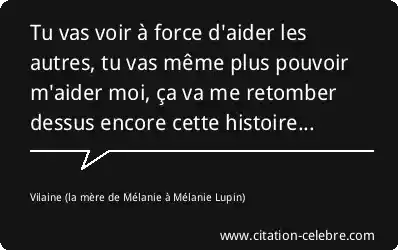 Tu vas voir à force d'aider les autres, tu vas même plus pouvoir m'aider moi, ça va me retomber dessus encore cette histoire...