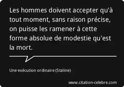 Les hommes doivent accepter qu'à tout moment, sans raison précise, on puisse les ramener à cette forme absolue de modestie qu'est la mort.