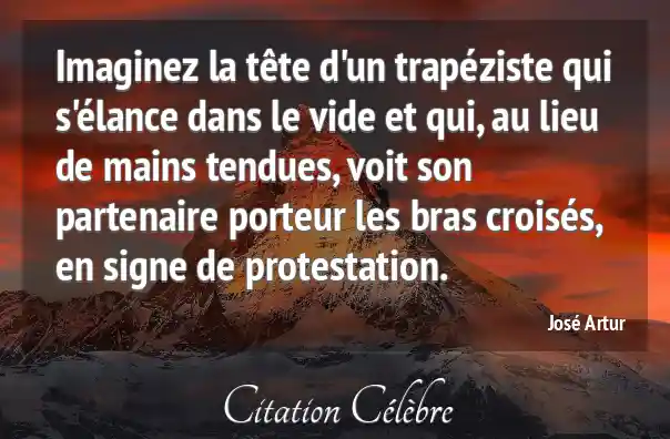 Imaginez la tête d'un trapéziste qui s'élance dans le vide et qui, au lieu de mains tendues, voit son partenaire porteur les bras croisés, en signe de protestation.