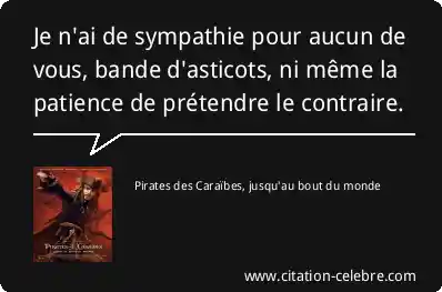 Je n'ai de sympathie pour aucun de vous, bande d'asticots, ni même la patience de prétendre le contraire.