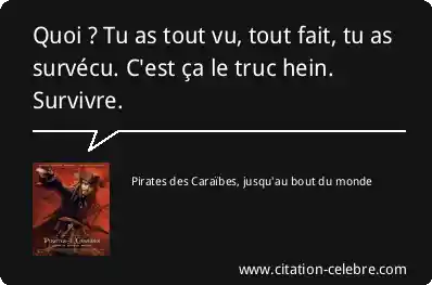 Quoi ? Tu as tout vu, tout fait, tu as survécu. C'est ça le truc hein. Survivre.
