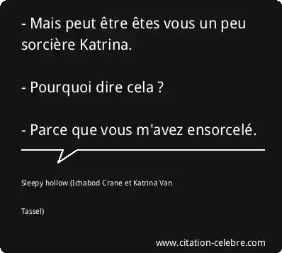- Mais peut être êtes vous un peu sorcière Katrina. - Pourquoi dire cela ? - Parce que vous m'avez ensorcelé.