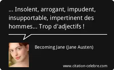 ... Insolent, arrogant, impudent, insupportable, impertinent des hommes... Trop d'adjectifs !