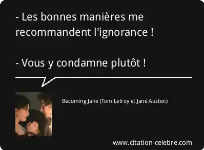- Les bonnes manières me recommandent l'ignorance ! - Vous y condamne plutôt !