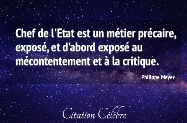 Chef de l'Etat est un métier précaire, exposé, et d'abord exposé au mécontentement et à la critique.