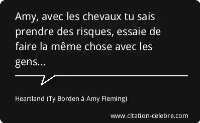 Amy, avec les chevaux tu sais prendre des risques, essaie de faire la même chose avec les gens...