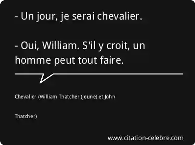 - Un jour, je serai chevalier. - Oui, William. S'il y croit, un homme peut tout faire.