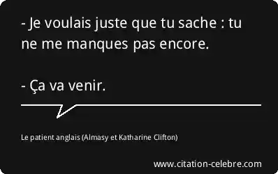 - Je voulais juste que tu sache : tu ne me manques pas encore. - Ça va venir.