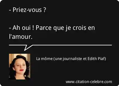 - Priez-vous ? - Ah oui ! Parce que je crois en l'amour.