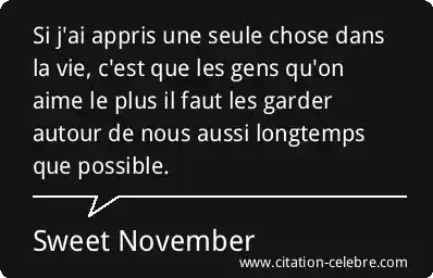 Si j'ai appris une seule chose dans la vie, c'est que les gens qu'on aime le plus il faut les garder autour de nous aussi longtemps que possible.