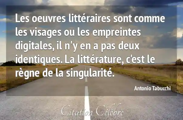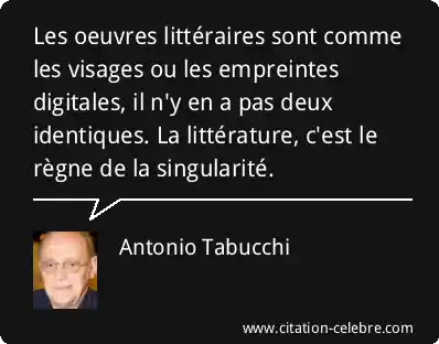 Les oeuvres littéraires sont comme les visages ou les empreintes digitales, il n'y en a pas deux identiques. La littérature, c'est le règne de la singularité.