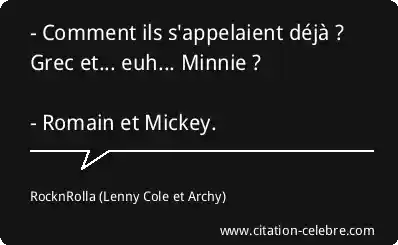 - Comment ils s'appelaient déjà ? Grec et... euh... Minnie ? - Romain et Mickey.