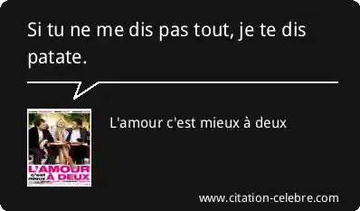 - Dis moi que tu m'aimes. - Tu sais que je t'aime. - Non ! Dis-le comme si tu donnerais ta vie pour moi, comme si rien d'autre ne comptait, comme si tout au monde tournait autour de moi. Comme si t'y croyais espèce de merdeux !