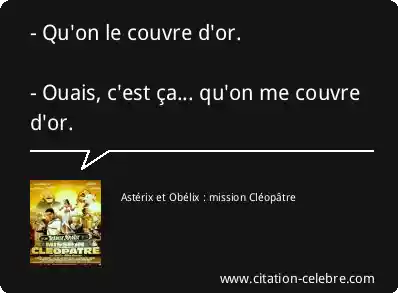 - Qu'on le couvre d'or. - Ouais, c'est ça... qu'on me couvre d'or.