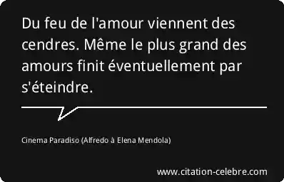 Du feu de l'amour viennent des cendres. Même le plus grand des amours finit éventuellement par s'éteindre.