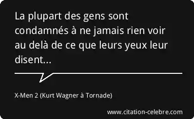 La plupart des gens sont condamnés à ne jamais rien voir au delà de ce que leurs yeux leur disent...