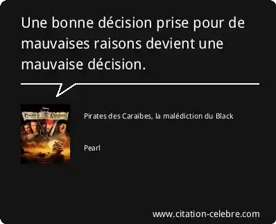 Une bonne décision prise pour de mauvaises raisons devient une mauvaise décision.