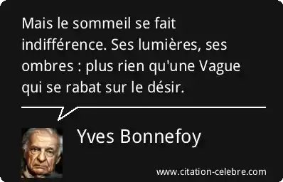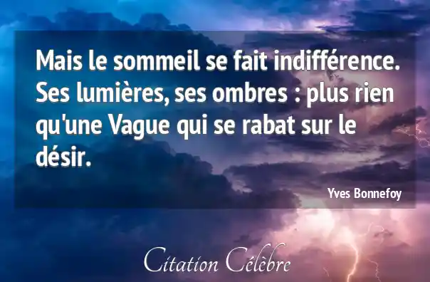 Mais le sommeil se fait indifférence. Ses lumières, ses ombres : plus rien qu'une Vague qui se rabat sur le désir.