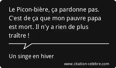 Le Picon-bière, ça pardonne pas. C'est de ça que mon pauvre papa est mort. Il n'y a rien de plus traître !