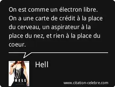 On est comme un électron libre. On a une carte de crédit à la place du cerveau, un aspirateur à la place du nez, et rien à la place du coeur.