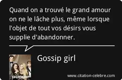 Quand on a trouvé le grand amour on ne le lâche plus, même lorsque l'objet de tout vos désirs vous supplie d'abandonner.