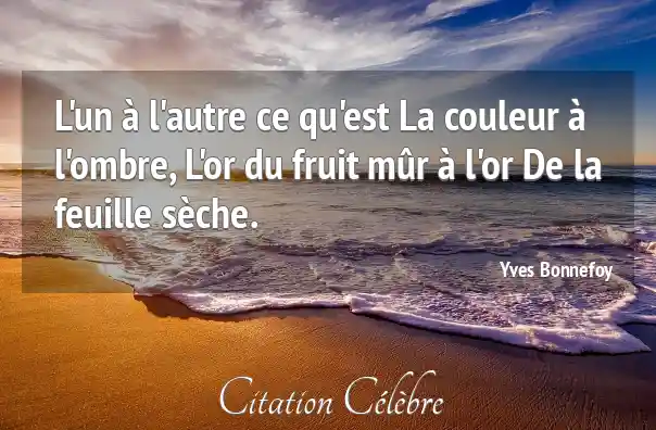 L'un à l'autre ce qu'est La couleur à l'ombre, L'or du fruit mûr à l'or De la feuille sèche.