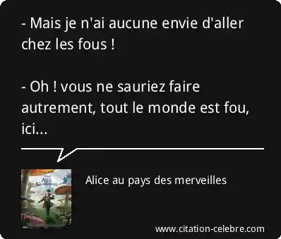 - Mais je n'ai aucune envie d'aller chez les fous ! - Oh ! vous ne sauriez faire autrement, tout le monde est fou, ici...