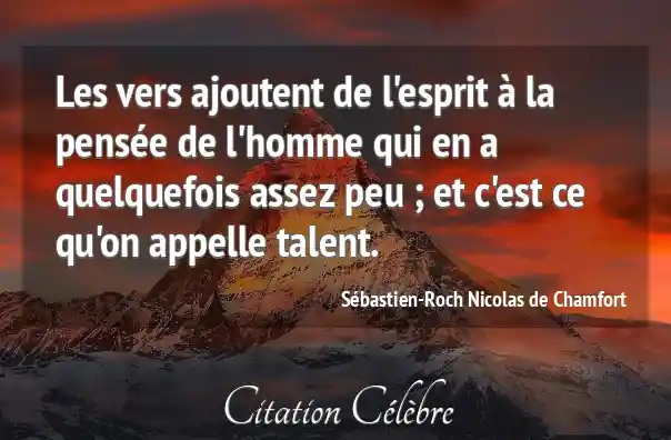 Les vers ajoutent de l'esprit à la pensée de l'homme qui en a quelquefois assez peu ; et c'est ce qu'on appelle talent.