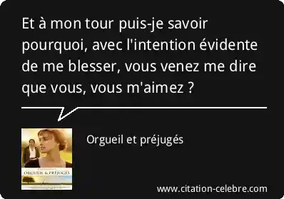 Citation  Orgueil et préjugés savoir : Et à mon tour puis-je savoir pourquoi, avec l'intention évidente... (Elizabeth Bennet - film & série)