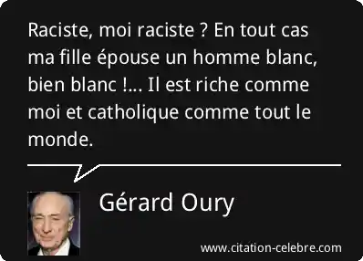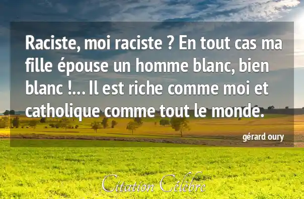Raciste, moi raciste ? En tout cas ma fille épouse un homme blanc, bien blanc !... Il est riche comme moi et catholique comme tout le monde.