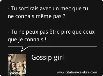 - Tu sortirais avec un mec que tu ne connais même pas ? - Tu ne peux pas être pire que ceux que je connais !