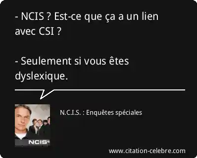 Citation  N.C.I.S. : Enquêtes spéciales etes : - NCIS ? Est-ce que ça a un lien avec CSI ?... (Inconnu et DiNozzo - film & série)